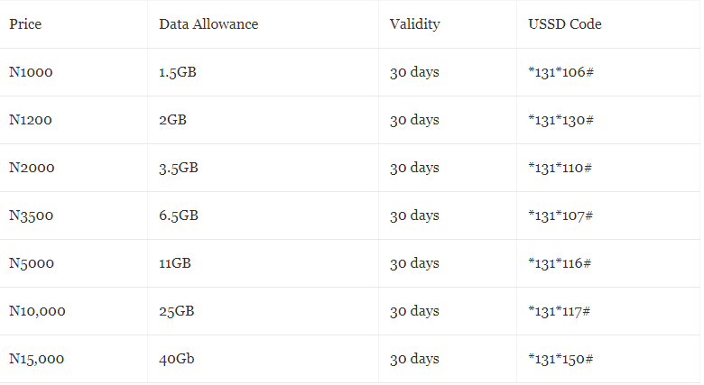 USSD: Dialling *131*1# or *904# and selecting your preferred data plan